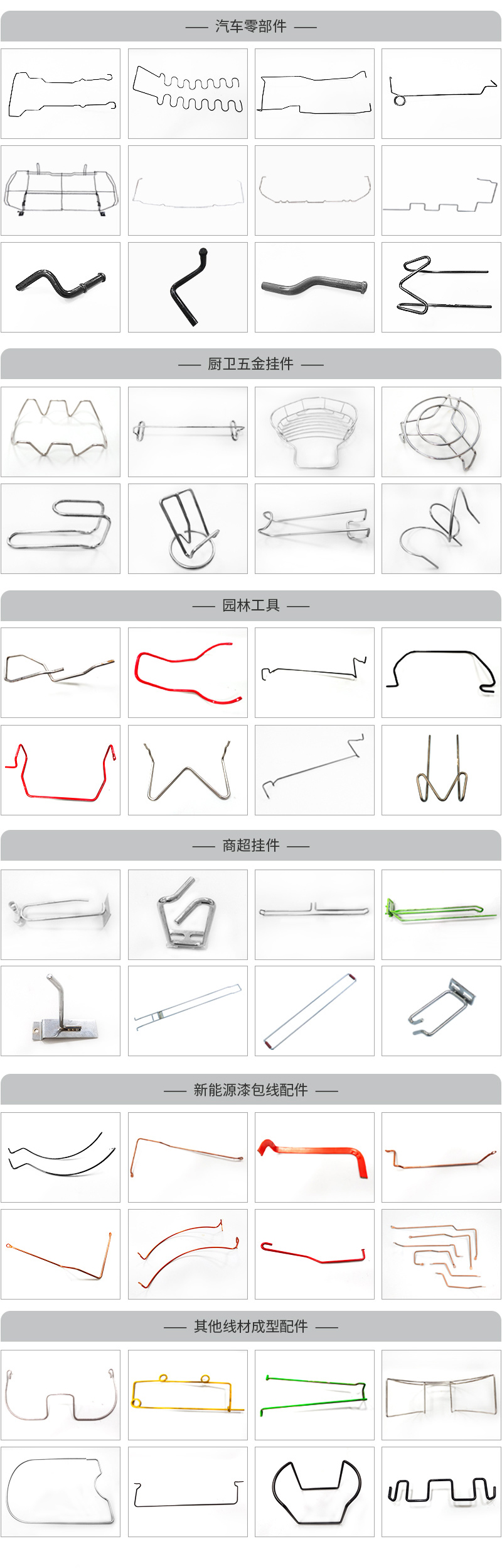7.適用于生產(chǎn):汽車座椅骨架,遮陽板骨架,汽車門鎖拉桿,工藝品金屬線,廚具餐具支架,倉儲籠超市手推車,超市貨架等線材成型產(chǎn)品
